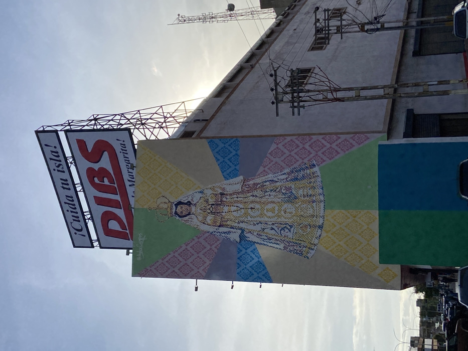 A billboard for DIB'S, promoting "¡Cuida tu isla!" and "…Margarita!" stands alongside a large mural