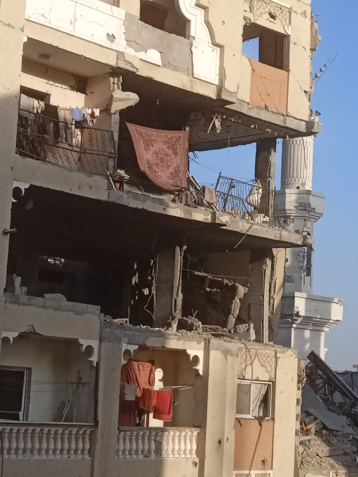 - "This image depicts a severely damaged multi-story building in Khan Yunis, Palestinian Territory" by FM-cV3b62, licensed under CC BY 4.0