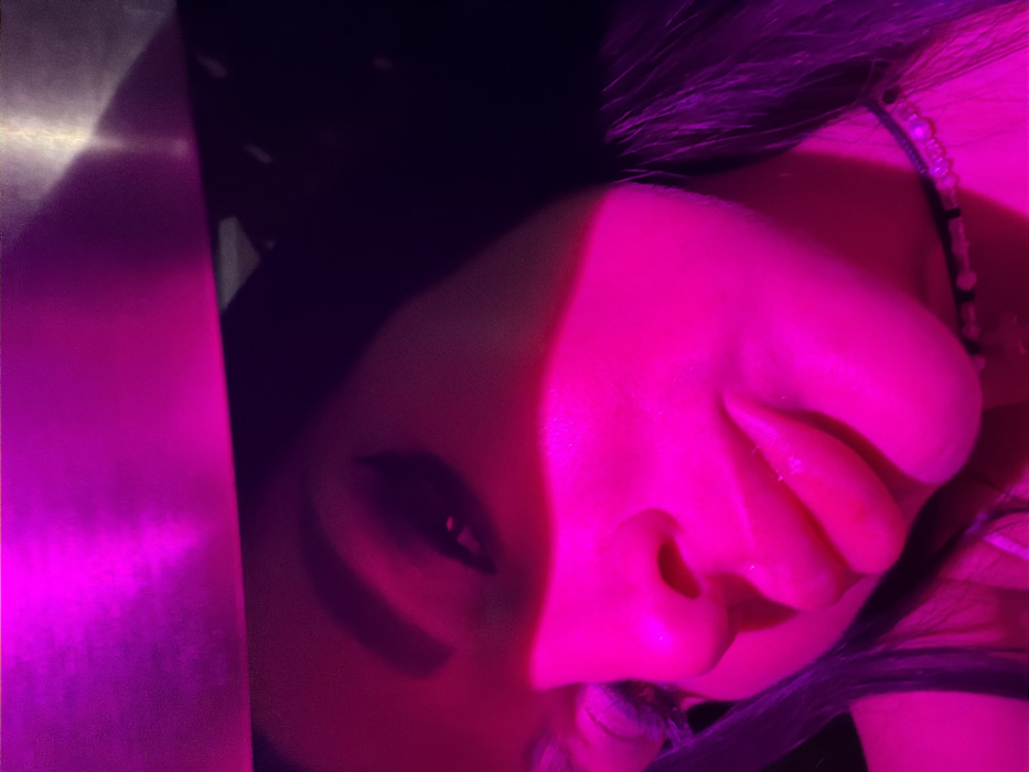 - "A close-up, angled portrait of a single individual, identified as a female, is depicted under artificial, saturated pink/magenta lighting" by FM-dhy2S2, licensed under CC BY 4.0