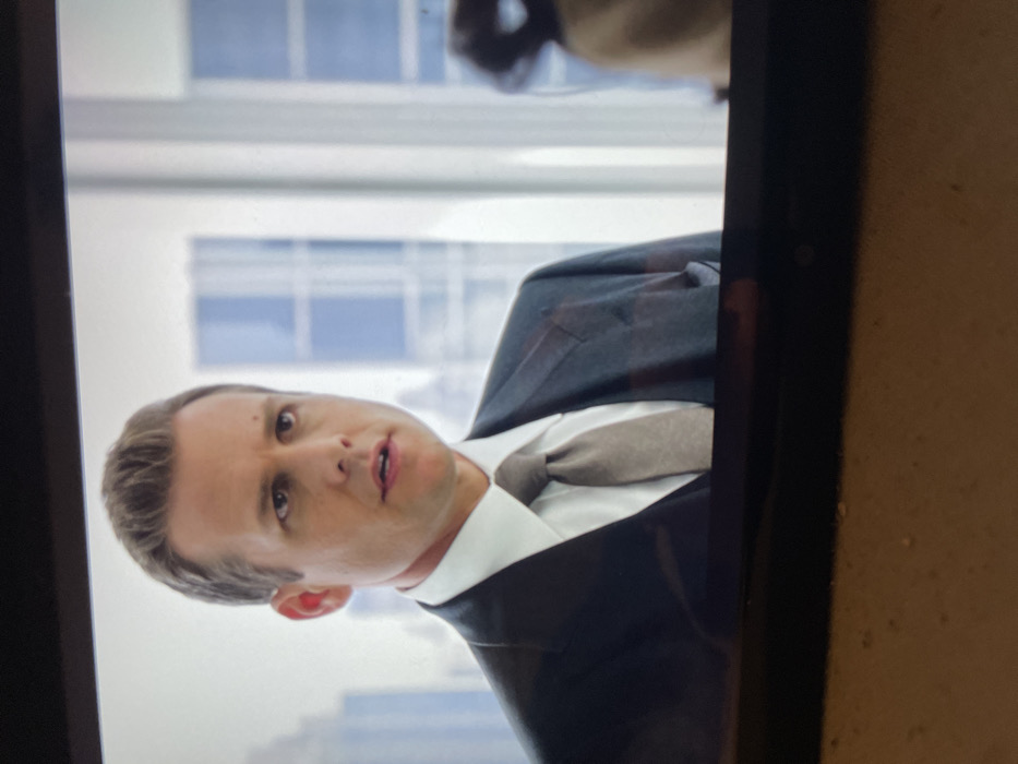 The image displays a close-up of a Caucasian male from the chest up, seemingly captured from a screen