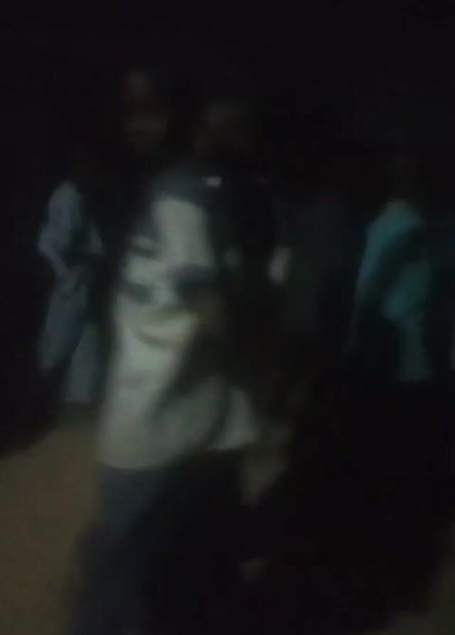 The video, recorded at night, shows a group of blurry figures standing together, possibly on a road or path