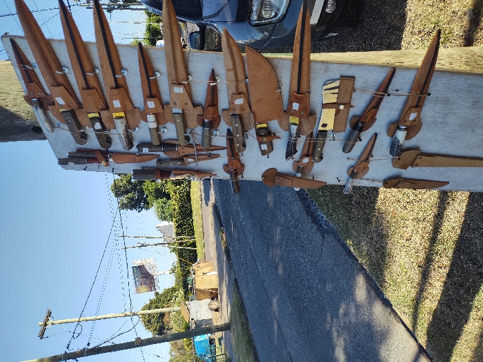 - "A roadside scene in Ricardo Rojas, Argentina, depicts a vertical display board on the right foreground, showcasing approximately 24-25 knives of various sizes and designs" by FM-pTpdg1, licensed under CC BY 4.0