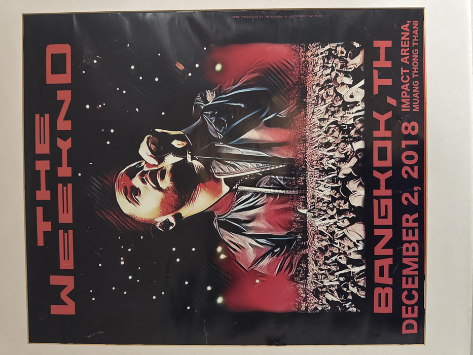 The image displays a poster advertising The Weeknd's concert in Bangkok, Thailand