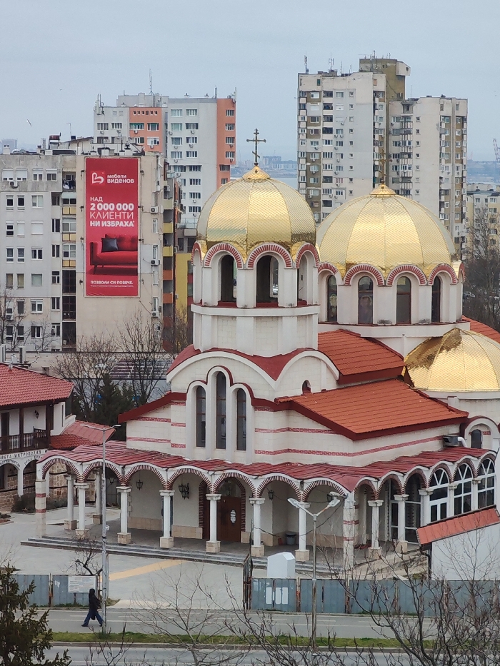 - "The image depicts an elevated view of the Saints Cyril and Methodius Cathedral in Burgas, Bulgaria, situated within an urban environment under an overcast sky" by FM-Jl1rl1, licensed under CC BY 4.0