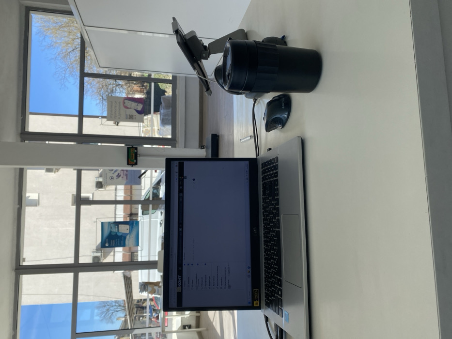 - "The image displays the interior of a commercial establishment in Popovo, Bulgaria, likely a telecommunications service center, viewed from a seated perspective at a desk" by FM-NnbDH2, licensed under CC BY 4.0