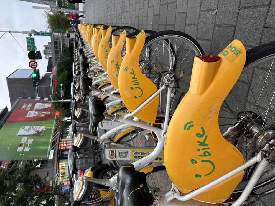 - "A long row of approximately 20-30 Ubike public rental bicycles is precisely docked on a paved gray brick sidewalk in the Xinyi District of Taipei, Taiwan" by FM-WqKVS2, licensed under CC BY 4.0