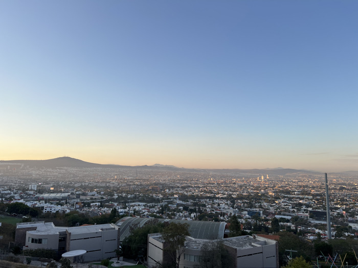 - "The image displays a panoramic elevated view of Querétaro, Mexico, captured during either early morning or late afternoon, characterized by a clear sky transitioning from deep blue overhead to a pale orange-yellow hue at the horizon" by FM-e8WYI3, licensed under CC BY 4.0