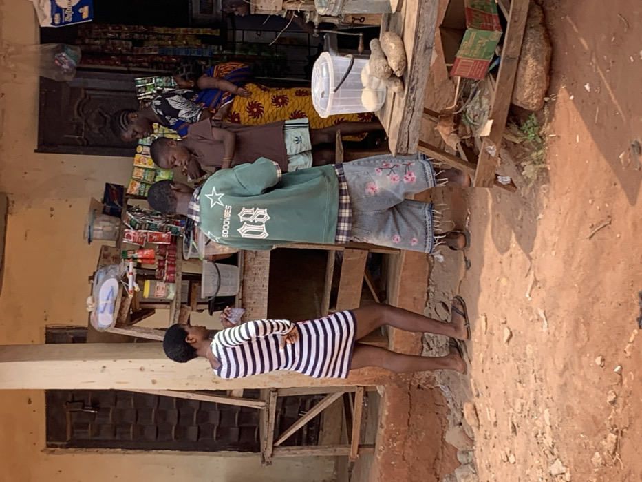 - "The scene depicts an outdoor street-side retail transaction or social interaction in Aguleri, Nigeria, set on a reddish-brown dirt ground" by FM-axXTn1, licensed under CC BY 4.0