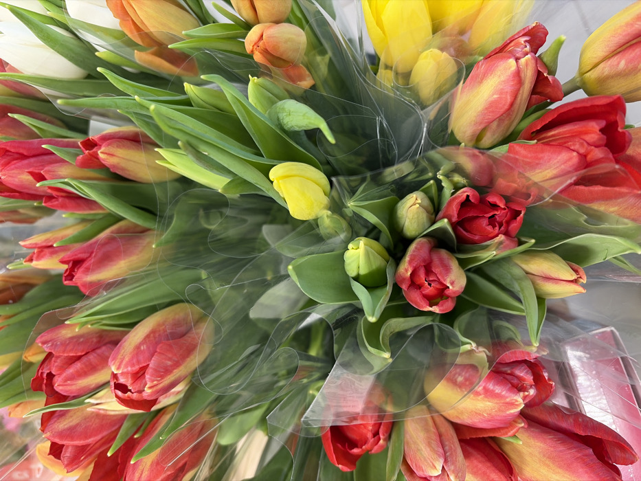 - "The image displays a dense assortment of fresh tulips, likely from a floral display in a retail setting in Chaikovsky, Russia" by FM-82K7o1, licensed under CC BY 4.0
