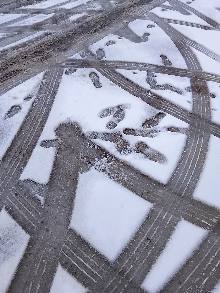 - "snow-covered ground with a network of tire tracks crisscrossing it" by FM-qduBW2, licensed under CC BY 4.0