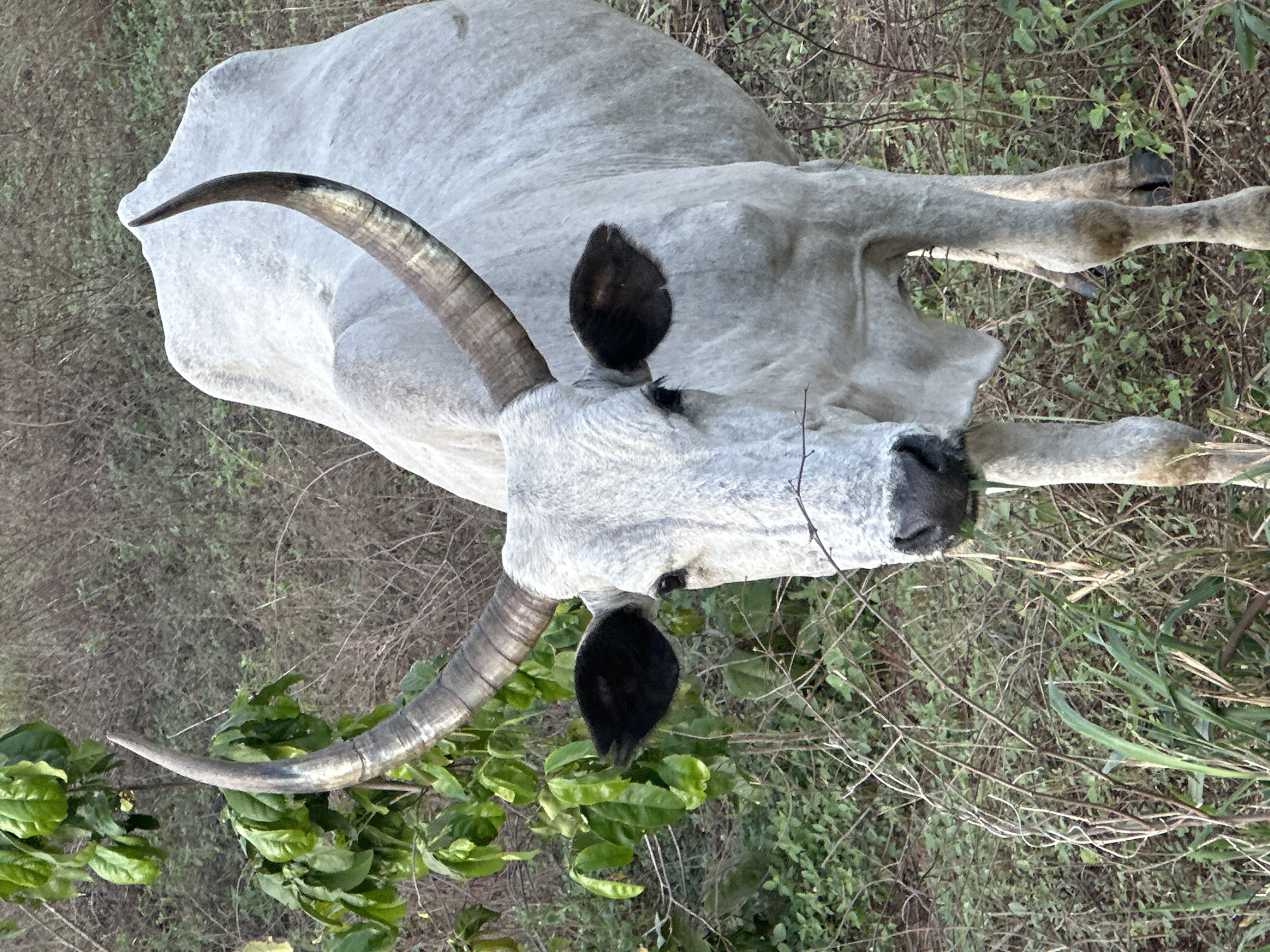 - "A full-body shot of a light gray cow with long, curved horns and black ears, captured outdoors in Ihiagwa, Nigeria" by FM-nbXiU2, licensed under CC BY 4.0