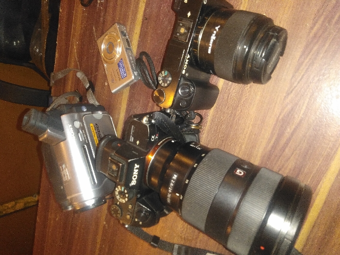 - "The scene, reportedly located in Astana, Kazakhstan, displays four Sony-branded camera devices arranged on a wooden surface" by FM-zOoQH3, licensed under CC BY 4.0