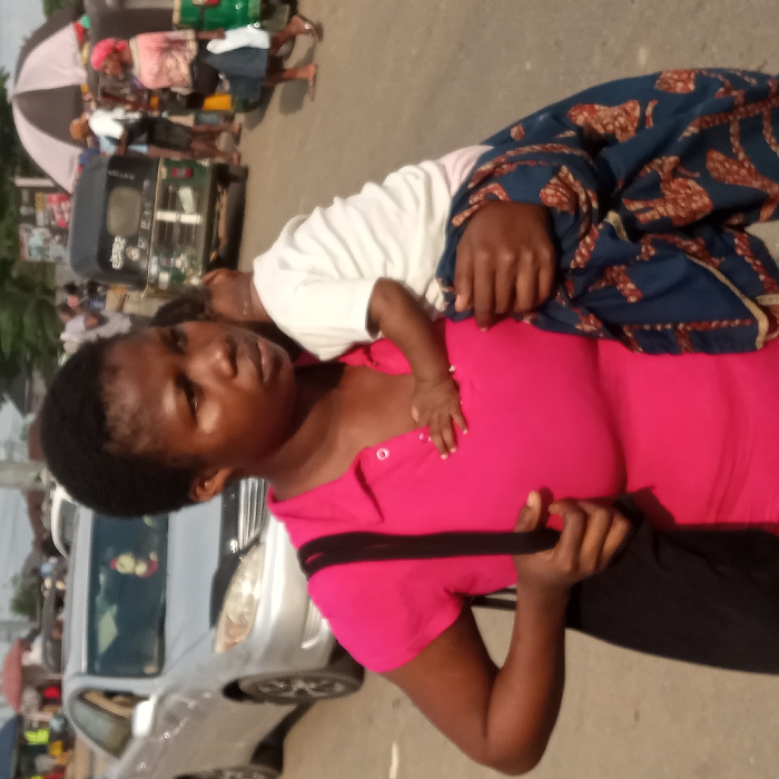 - "A woman in a pink top carries a child on her back, secured by a patterned blue cloth" by FM-AzUhs1, licensed under CC BY 4.0