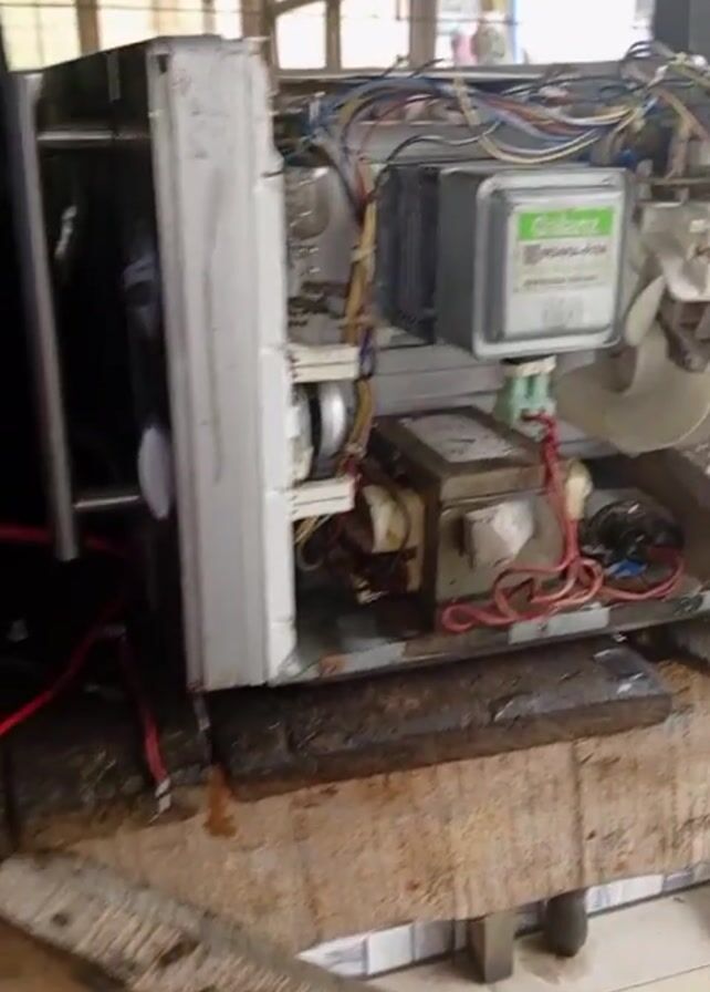 - "microwave oven with its outer casing removed, revealing its internal components" by FM-AiL8J2, licensed under CC BY 4.0