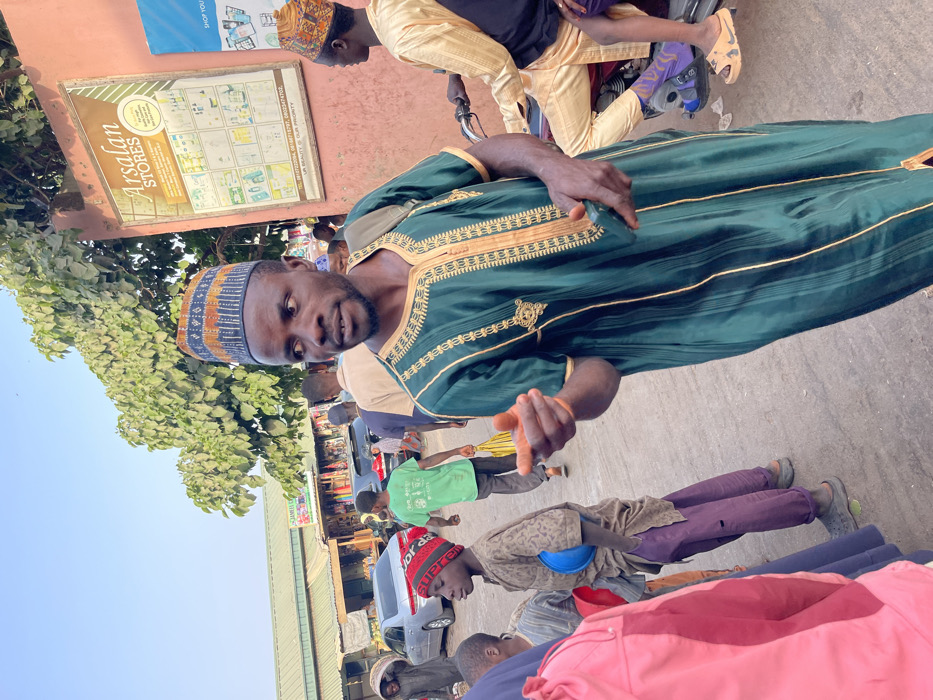 The image depicts a crowded street scene in Samaru, Nigeria, identified by the "Arsalan Stores" sign on a reddish wall