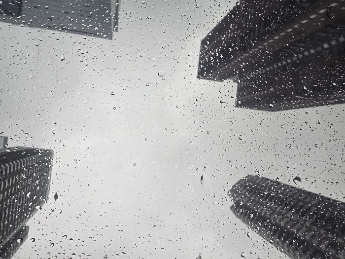 - "Skyscrapers rise into a gray, overcast sky, viewed through a rain-streaked window" by FM-fB9Tw2, licensed under CC BY 4.0