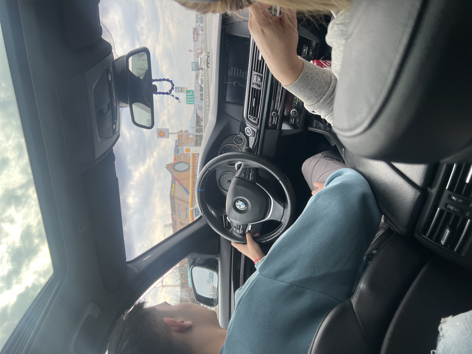 - "interior of a BMW vehicle from a rear passenger's perspective, looking forward through the windshield" by FM-MT6zM2, licensed under CC BY 4.0