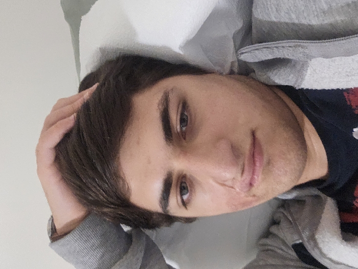 A male subject, appearing to be in his late teens or early twenties, is depicted in a close-up portrait, reclining indoors in an unspecified location within the city of Unknown, Unknown