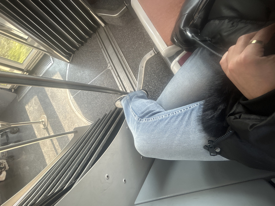 - "An overhead-angle image captures a seated individual's lower body and surrounding tram interior, specifically within the articulated joint section of a tram in Strasbourg, France" by FM-tW5NP2, licensed under CC BY 4.0