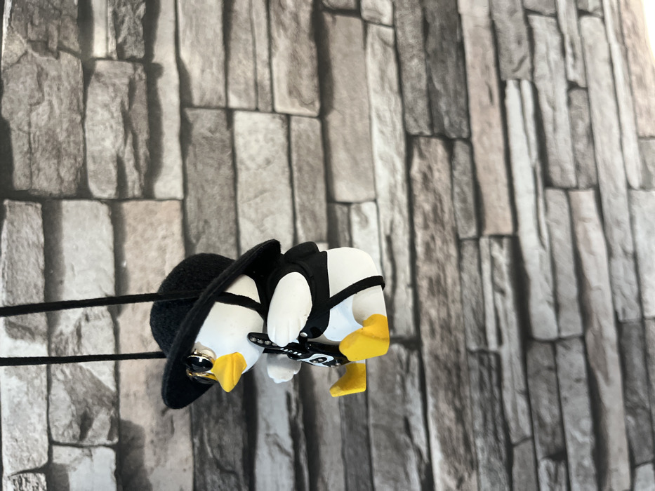 - "A white penguin figurine is depicted, dressed in rock star attire, suspended against a textured wall" by FM-yO5cv1, licensed under CC BY 4.0
