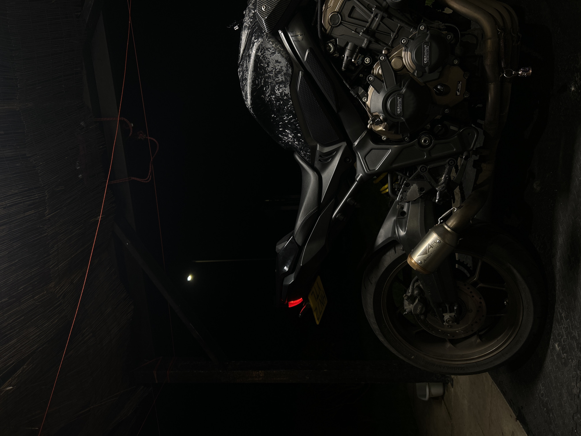 - "A black sport motorcycle is parked at night within a dimly lit, sheltered structure, presumably in Hertsmere, United Kingdom" by FM-fpkwo1, licensed under CC BY 4.0