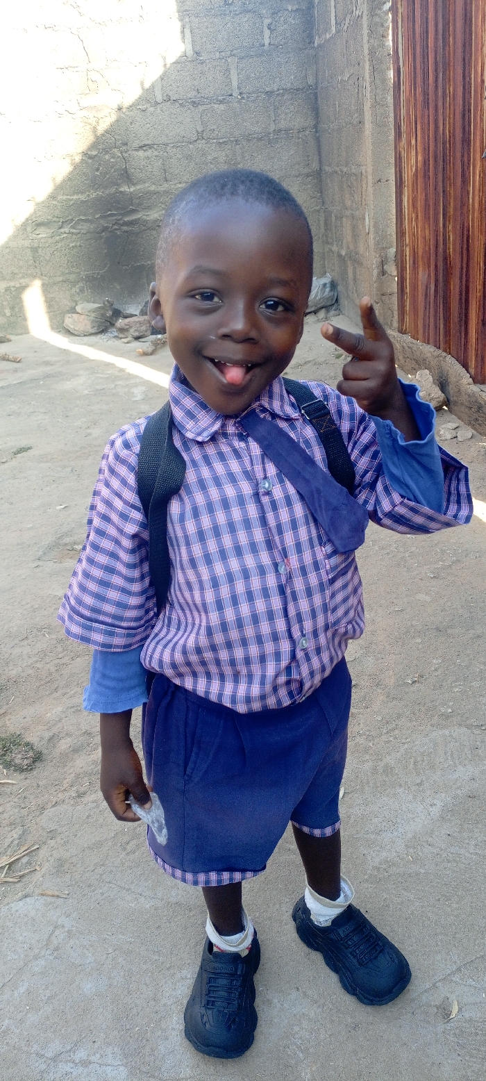 - "A young child, wearing a school uniform consisting of a blue and pink checkered shirt, blue shorts, and black shoes with white socks, stands outside with a backpack on" by FM-NuR9d2, licensed under CC BY 4.0
