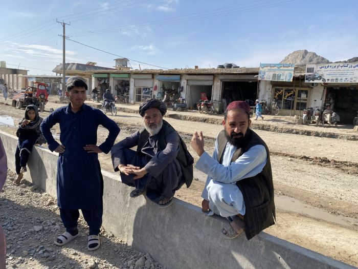 The image portrays a daytime street scene in Gundigan Village, Afghanistan