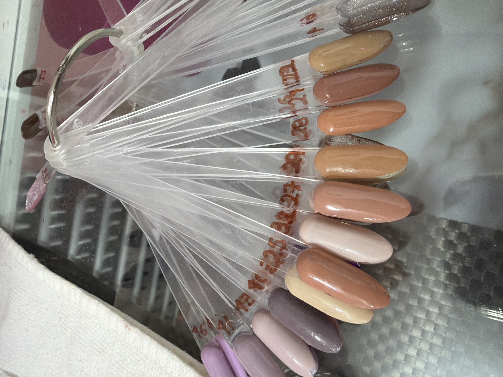 - "The image depicts a close-up view of a fan-shaped nail polish swatch ring, positioned on a patterned, reflective surface in San Andrés Cholula, Mexico" by FM-ZShVZ2, licensed under CC BY 4.0