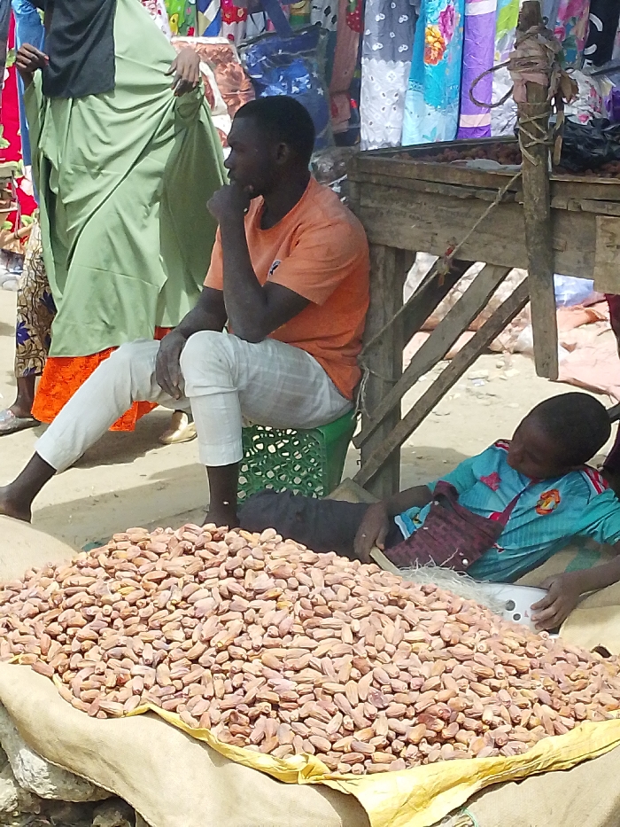 The scene is set in an outdoor market in Fagge D1, Nigeria