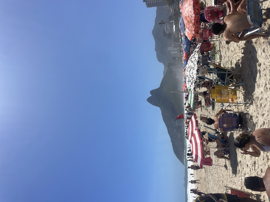- "This image depicts a crowded Ipanema Beach in Rio de Janeiro, Brazil, under a clear, bright blue sky" by FM-Wg4lr1, licensed under CC BY 4.0