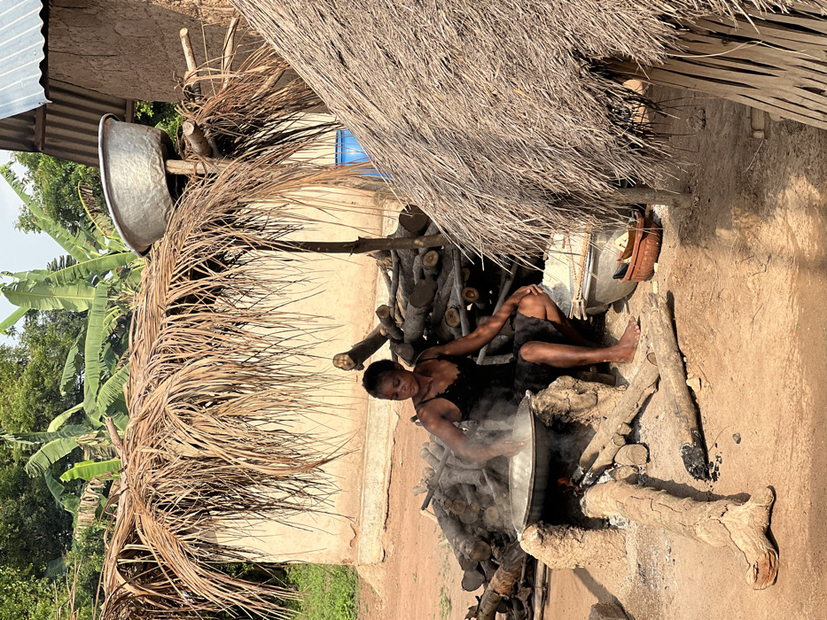 This image, taken in Wuinta, Ghana, depicts an outdoor cooking scene