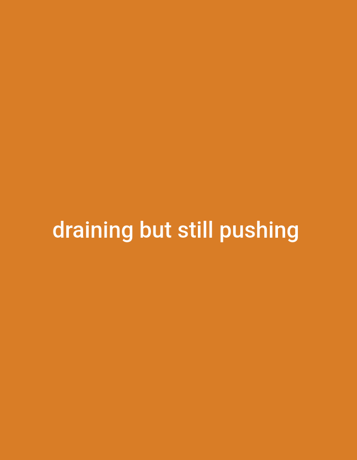 The image is a solid orange background. Centered near the bottom is the text "draining but still pushing" in white sans-serif font. The message is straightforward and concise. The contrast between the orange background and the white text makes it easily readable. The composition emphasizes the textual message.