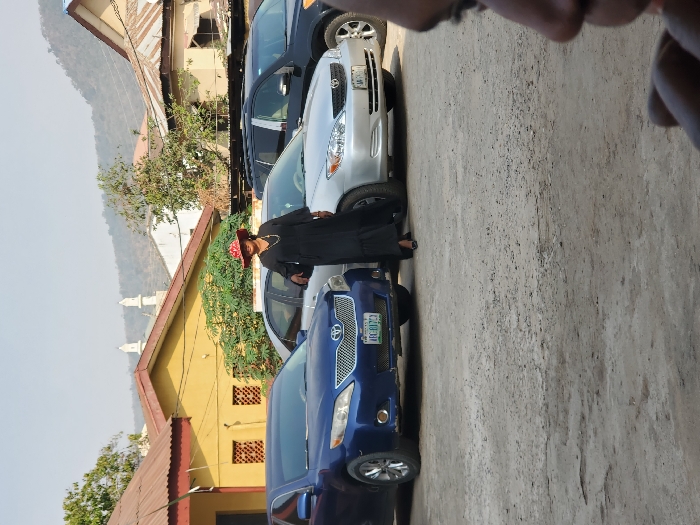The image portrays an outdoor scene in Lokoja, Kogi State, Nigeria, featuring an unpaved ground surface and multiple vehicles