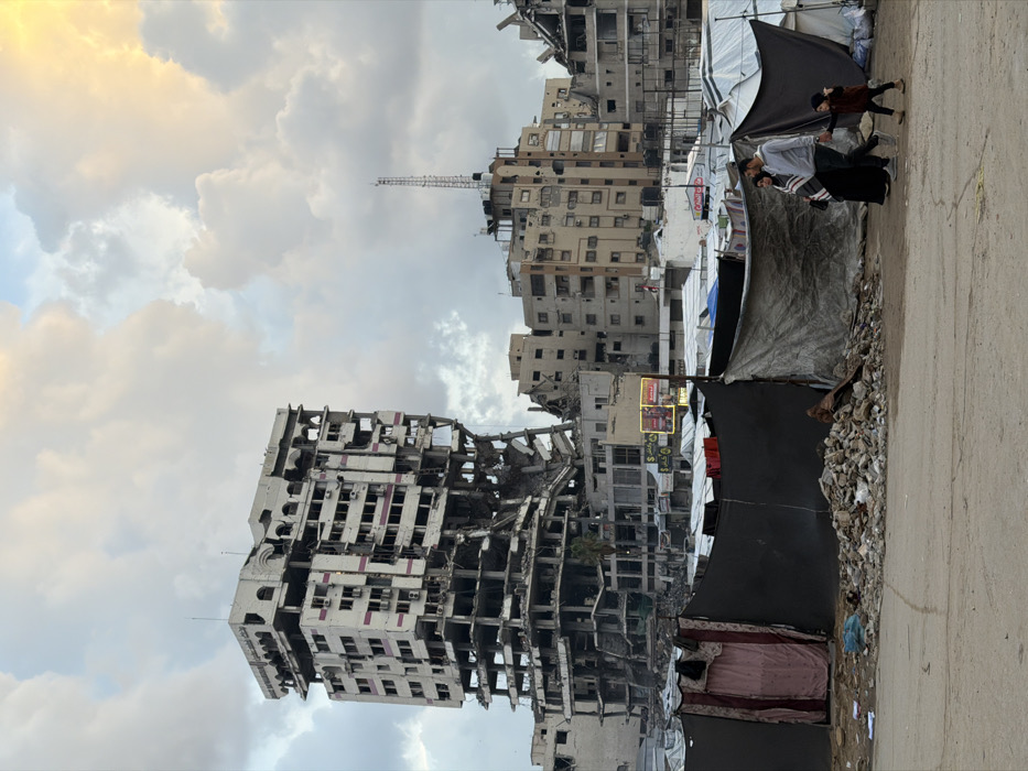 - "This image captures a devastated urban scene in the city of Gaza, Palestinian Territory, under a partially cloudy sky with patches of golden light" by FM-PSI0J3, licensed under CC BY 4.0