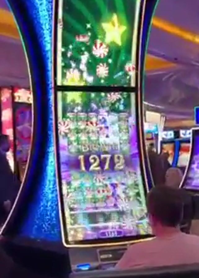 person sitting in front of a "Light & Wonder" slot machine in a casino