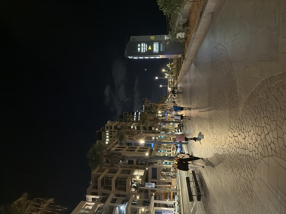 - "This nighttime image depicts a section of the Tel Aviv beachfront promenade, confirmed by a prominent wayfinding sign displaying "Tel Aviv-Yafo," "Ganei Yehoshua," and "Hof Ha'Atzmaut" (Independence Beach) in both Hebrew and English, with a directional arrow" by FM-QOWpF2, licensed under CC BY 4.0