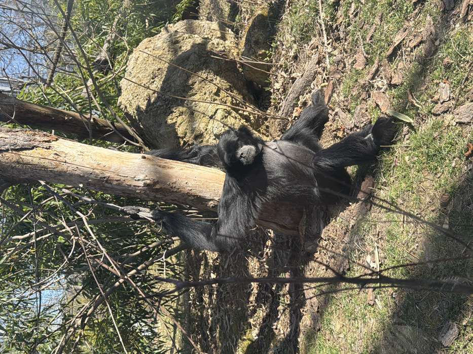 - "An adult siamang (Symphalangus syndactylus) is observed resting against a tree trunk within an outdoor enclosure at the Sofia Zoo, Sofia, Bulgaria" by FM-8iUEh1, licensed under CC BY 4.0