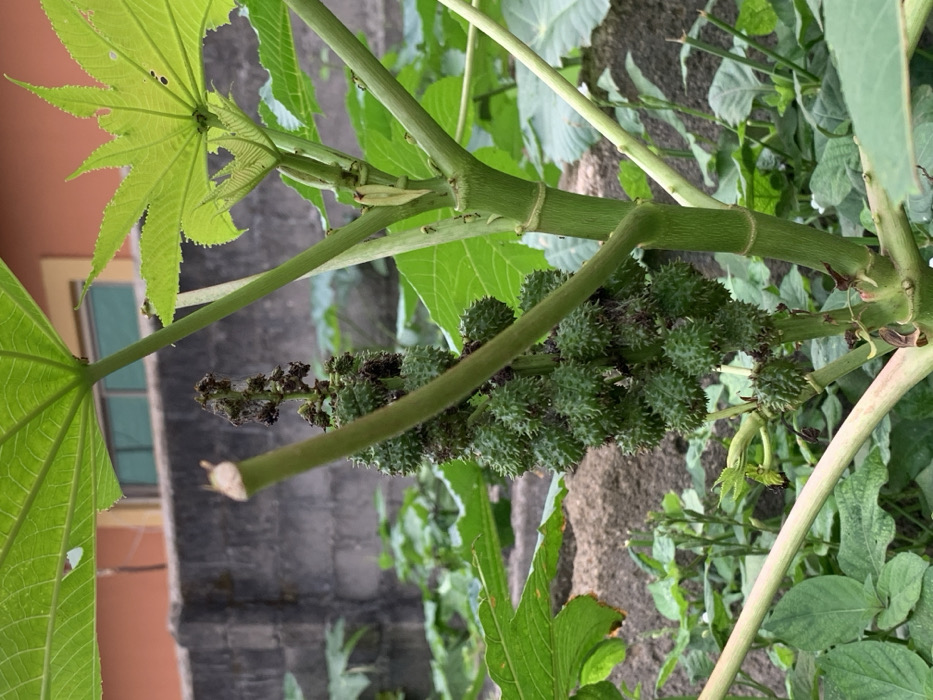 - "The image depicts a close-up view of a castor bean plant (Ricinus communis) in an outdoor setting in Ikorodu, Nigeria" by FM-8xdlM2, licensed under CC BY 4.0