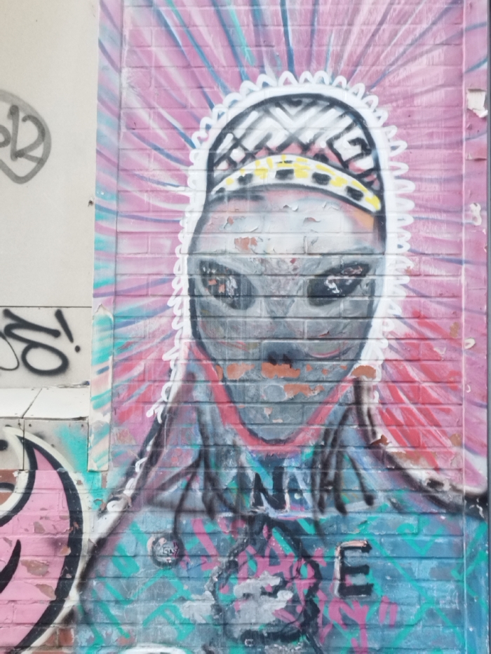 - "An outdoor scene in Montevideo, Uruguay, depicts a large graffiti mural covering a weathered brick wall" by FM-b3qRJ3, licensed under CC BY 4.0
