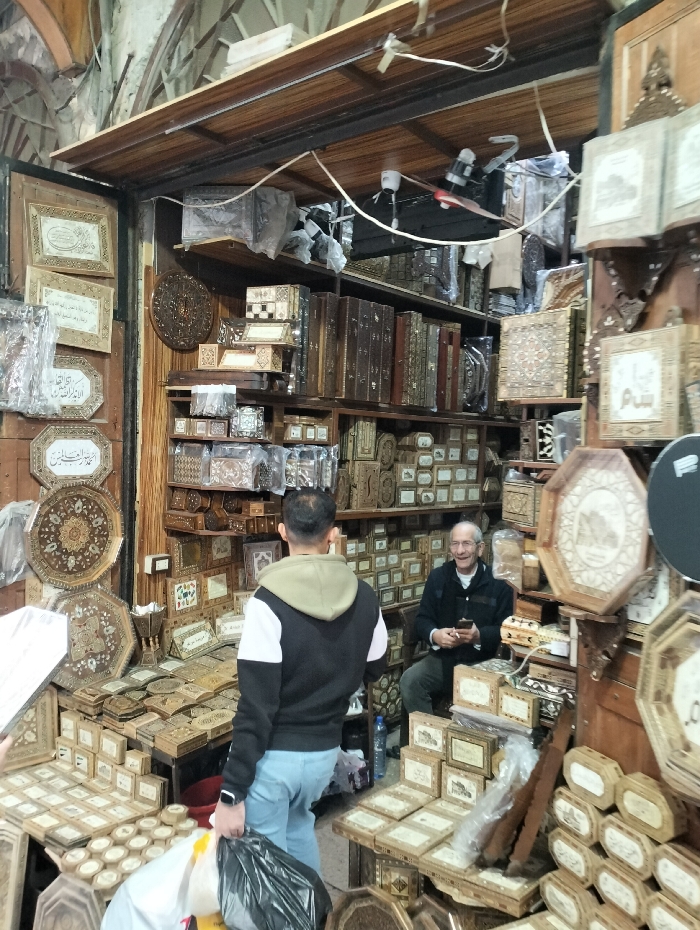 - "The image displays an interior view of a densely stocked traditional wooden handicraft stall within a souk in Damascus, Syria" by FM-4RDN43, licensed under CC BY 4.0