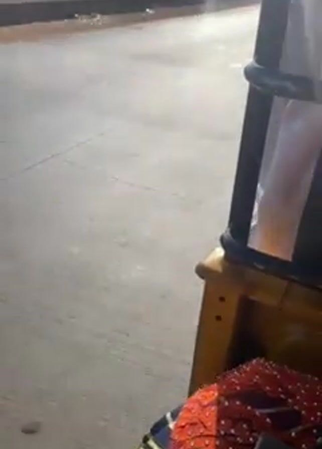 The video depicts a person riding in a yellow auto rickshaw on a road