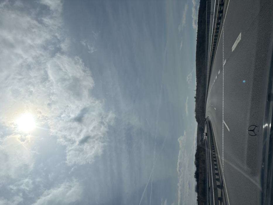 - "The scene depicts a daytime view from the interior of a Mercedes-Benz vehicle, evidenced by the brand's logo on the dashboard, looking forward onto a multi-lane asphalt highway" by FM-RN0bk2, licensed under CC BY 4.0