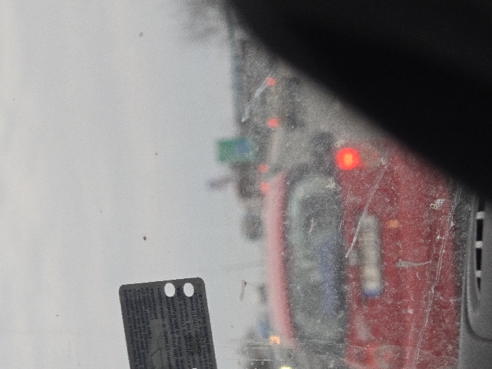 - "The image displays a forward-facing view from inside a vehicle, looking through a dirty and scratched windshield" by FM-IYQQn1, licensed under CC BY 4.0