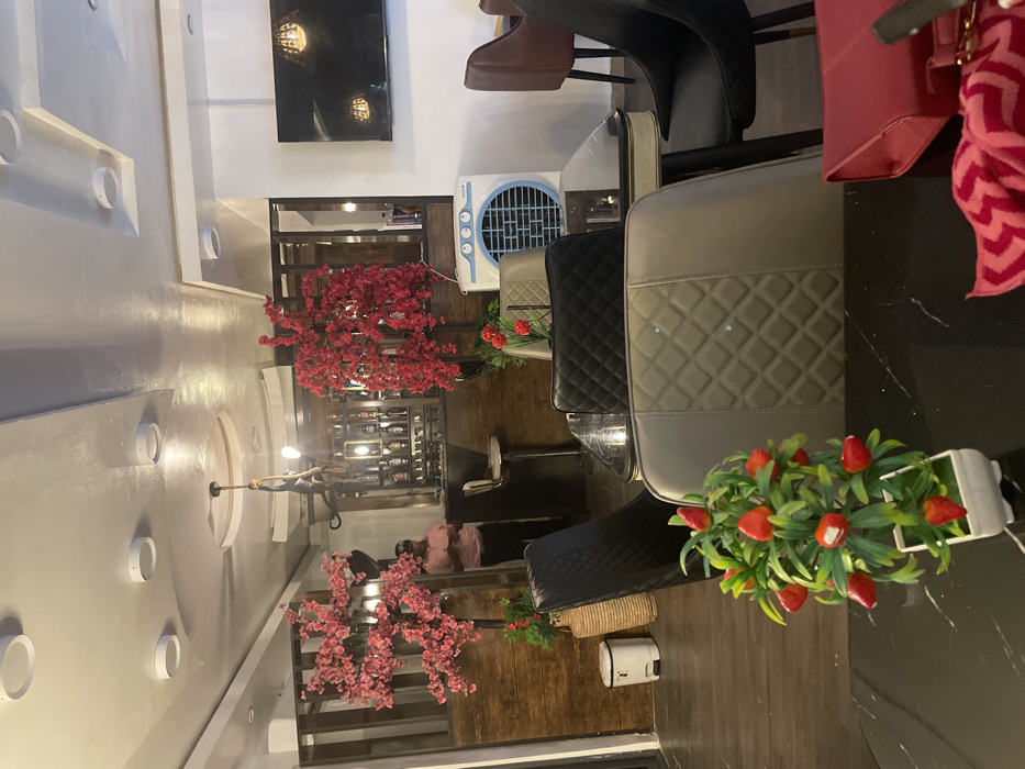 The scene depicts the interior of a contemporary dining or lounge establishment located in Lokoja, Nigeria