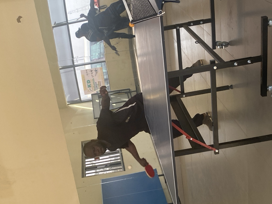 An indoor scene in Unguwar Sarki, Nigeria, depicts a table tennis match
