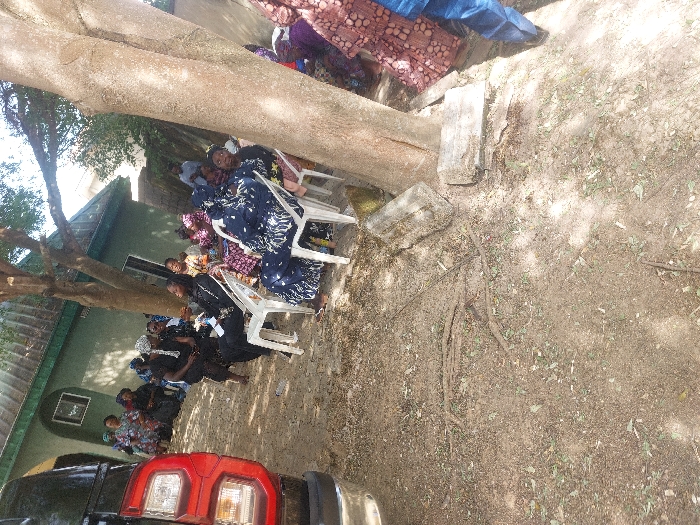 This image captures an outdoor gathering in Pankshin, Nigeria, under bright daylight