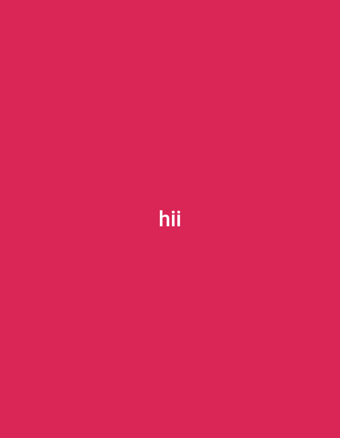 The image displays a solid magenta-red field. Centered within this field is the white text "hii" rendered in a sans-serif typeface. No other discernible objects, subjects, people, actions, interactions, or environmental features are present. The scene's location within the city of Unknown, Unknown, cannot be determined from the provided visual information.