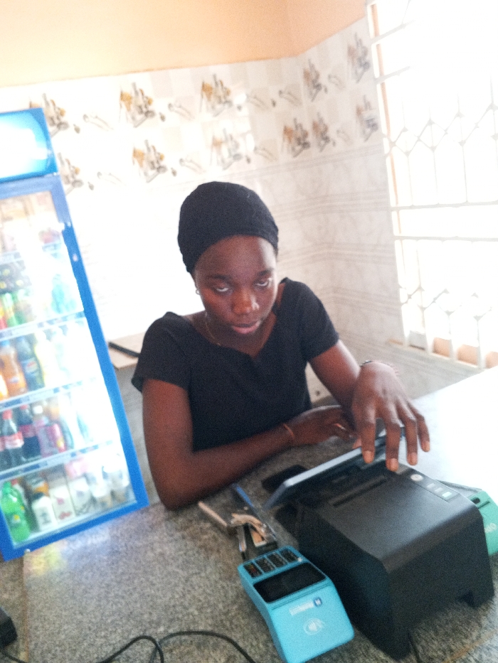 The scene is an indoor commercial establishment in Akwanga, Nigeria