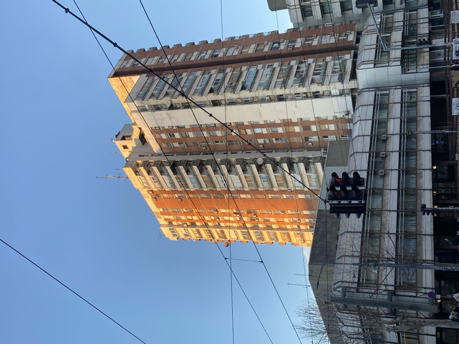 tall building, viewed from below at an angle