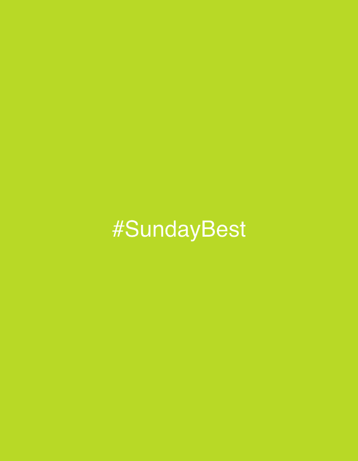 The image is a solid chartreuse background with the hashtag "#SundayBest" centered horizontally and vertically in white